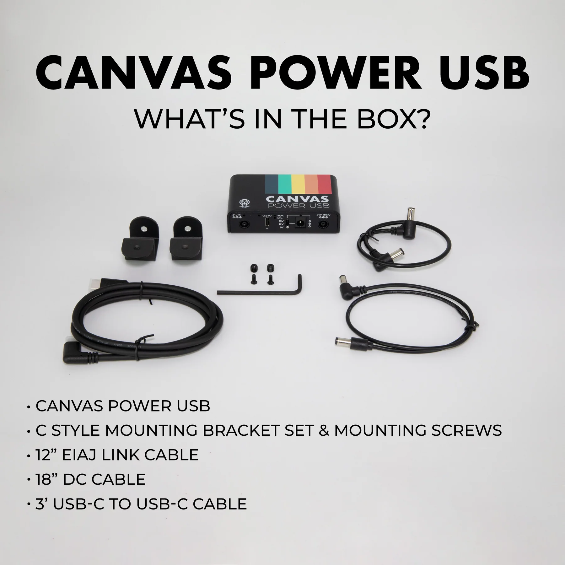 De Walrus Audio Canvas Power USB is een slimme, ultracompacte oplossing om je pedalboard te voeden via USB‑C Power Delivery (PD). Of je nu speelt op een festival, in een oefenruimte met te weinig stopcontacten of onderweg met een powerbank: met de Canvas Power USB neem je je volledige rig overal mee naartoe. Deze module vormt de perfecte schakel tussen moderne USB‑C laders, laptop‑adapters en USB‑PD powerbanks, en je bestaande Canvas Power of andere voedingen met een 24V EIAJ‑input.